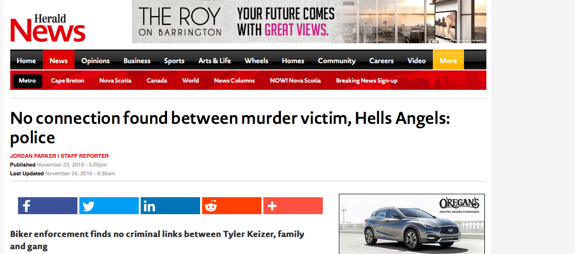 Keizer继母Facebook页面上的照片显示,很多家庭成员都穿着“支持当地81”的衣服。字体与地狱天使6月Musquodoboit港返校派对的海报相匹配,标语也一样。