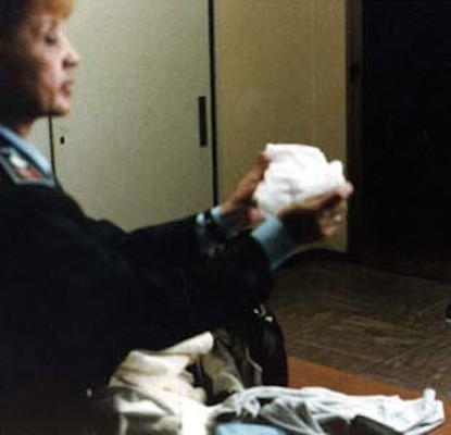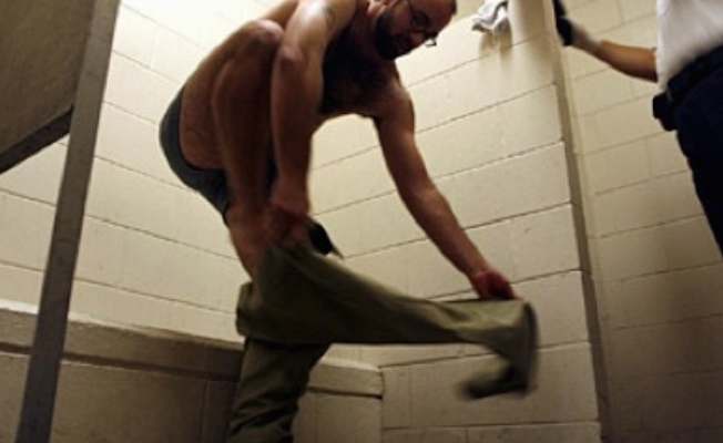 当你第一次进监狱,你第一次被脱衣搜身时,你会觉得很丢脸。你得一次给他们一件你的衣服,你知道,有些人会害羞。和男人在一起有时会发生“事情”。然后你要抬起你的阴囊。如果你没有割包皮你得把你老二的头拉回来,确保里面没有东西。你得向他们展示十个手指,十个脚趾。你得转过身来站在两个成年男子面前弯下腰,蹲下来咳嗽。然后他们把你的衣服还给你就像从你手里拿走一样,一次一件。