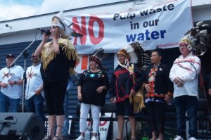 2018年“没有管道”,Mi'kmaw酋长和其他北部纸浆提出的污水处理系统的对手。照片:Joan Baxter