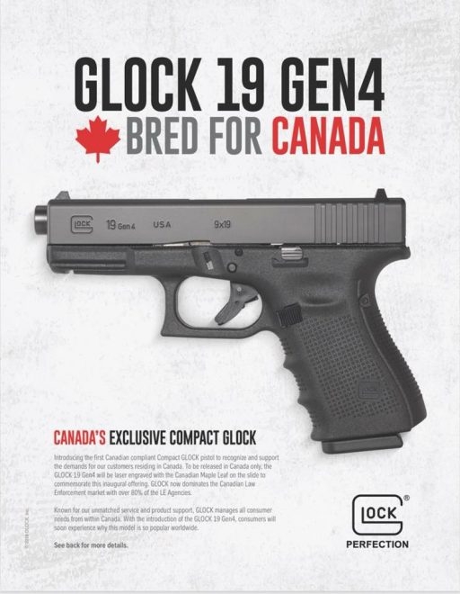广告称其为加拿大独家紧凑型格洛克手枪,但枪管上印有“美国”字样。