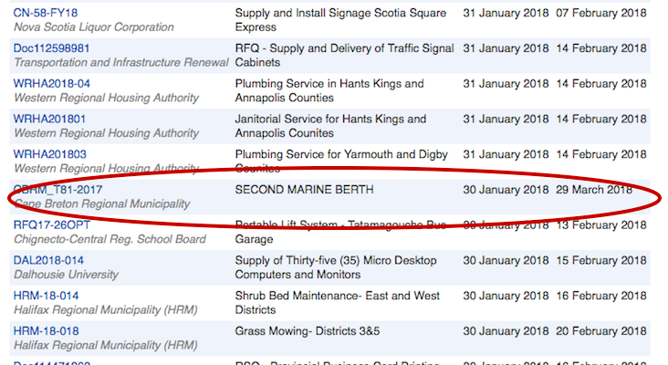 After checking to see if Donald Trump has nuked someone, one of the first things I do in the morning is checkNova年代cotia tender notices page在省级网站上。大多数招标发布automatically at midnight, but every now and then the odd tender offer doesn’t get posted until after government offices open, so sometimes I miss them.