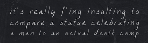 I think removing the statue well reflects our current politics. Just as putting it up in 1931 reflected politics back then. Now we as a community are trying to pay attention to others who see the statue as an insult. In time we may formally recognize the statue as a way to educate ourselves (which I think it has been doing for me and others already). But your analysis of symbol vs object is very strange. A statue is an object. The death camps were and are an object. The statue is symbolic. So today are the death camps. Gail Lethbridge’s problem is trying to use today’s preservation of the death camps to argue for the preservation of the Cornwallis statue. The argument seems wrong. As symbols they share some features and yet are very different. I think you should ask your grade three students what these symbols might have in common for us now. and how they differ, which they certainly do. Also, I like the plinth idea.