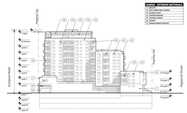 Quinpool/Pepperell:这个方案是一个九层的混合用途建筑,在目前西西里比萨大楼的场地上面向Quinpool,并延伸到Pepperell街,那里的高度将下降到三层。整个开发项目提出了70个住宅单元,沿着Pepperell的底层住宅,沿着Quinpool的底层商业。该计划还提出了70个地下停车位,可以从Pepperell进入。检查市工作人员在这里报道这项提议。