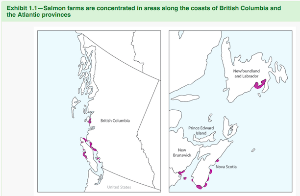 鲑鱼养殖业在加拿大是一个价值10亿美元的产业,加拿大是世界第四大养殖鲑鱼生产国。