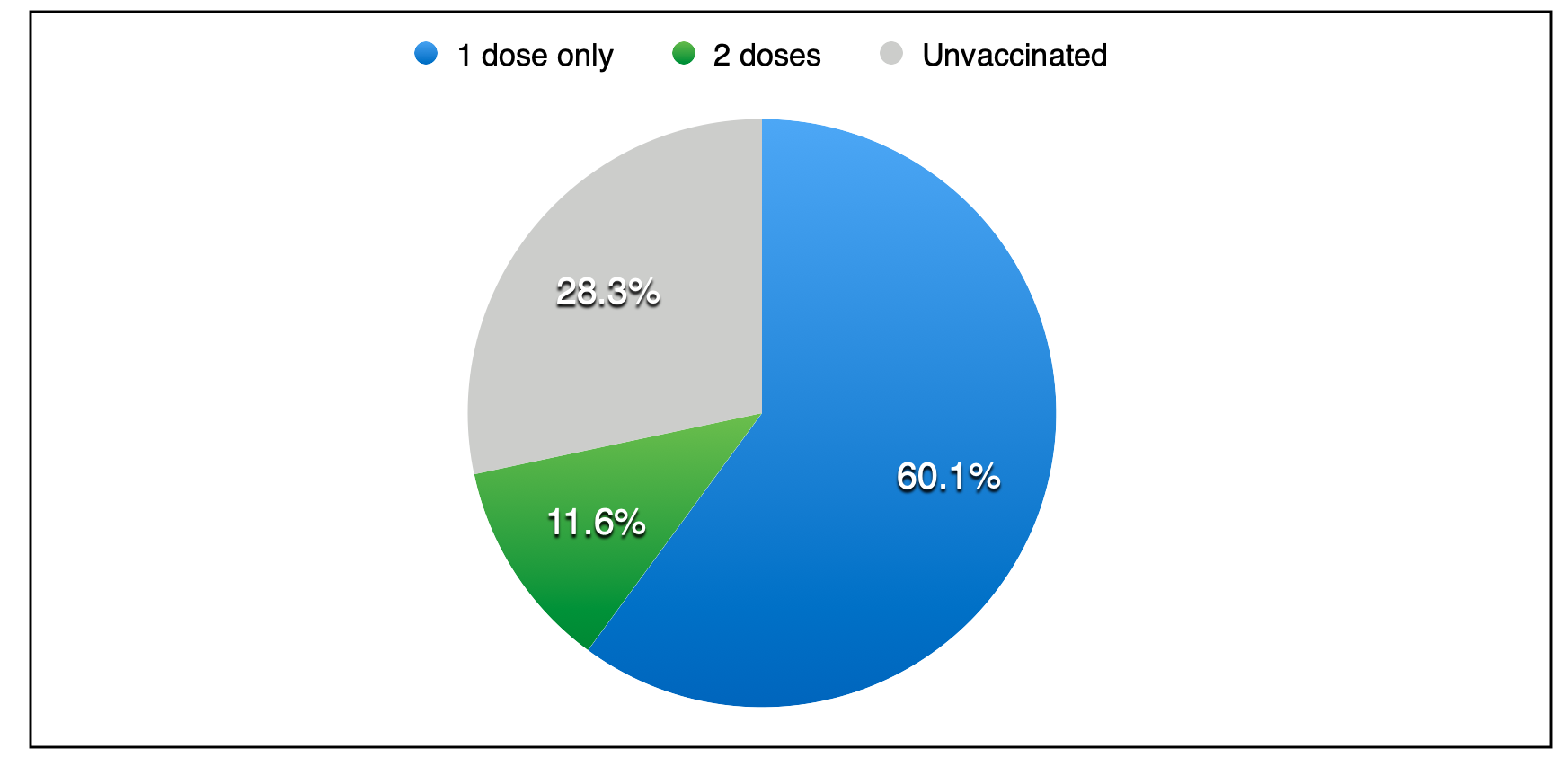 昨天,给药了18,199剂疫苗。总共施用了808,713次剂量;其中,112,328是第二剂。截至昨天的一天结束,71.7%的整个人口已收到至少一剂疫苗。