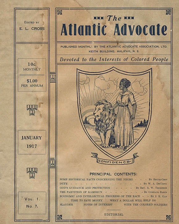 《大西洋倡导者》是第一次世界大战期间由哈利法克斯黑人社区的领导人出版的。新斯科舍省档案馆有网上四个问题.