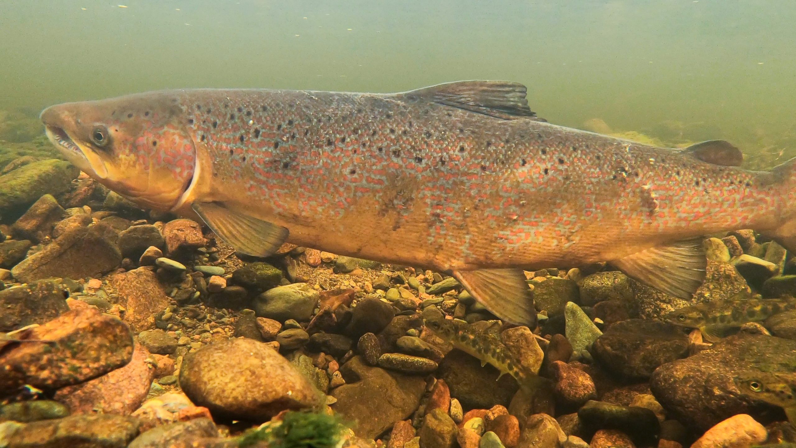 2019年11月,在新斯科舍省圣玛丽河拍摄的大型野生大西洋鲑鱼。图片由ASF/尼克·霍金斯和汤姆·切尼提供