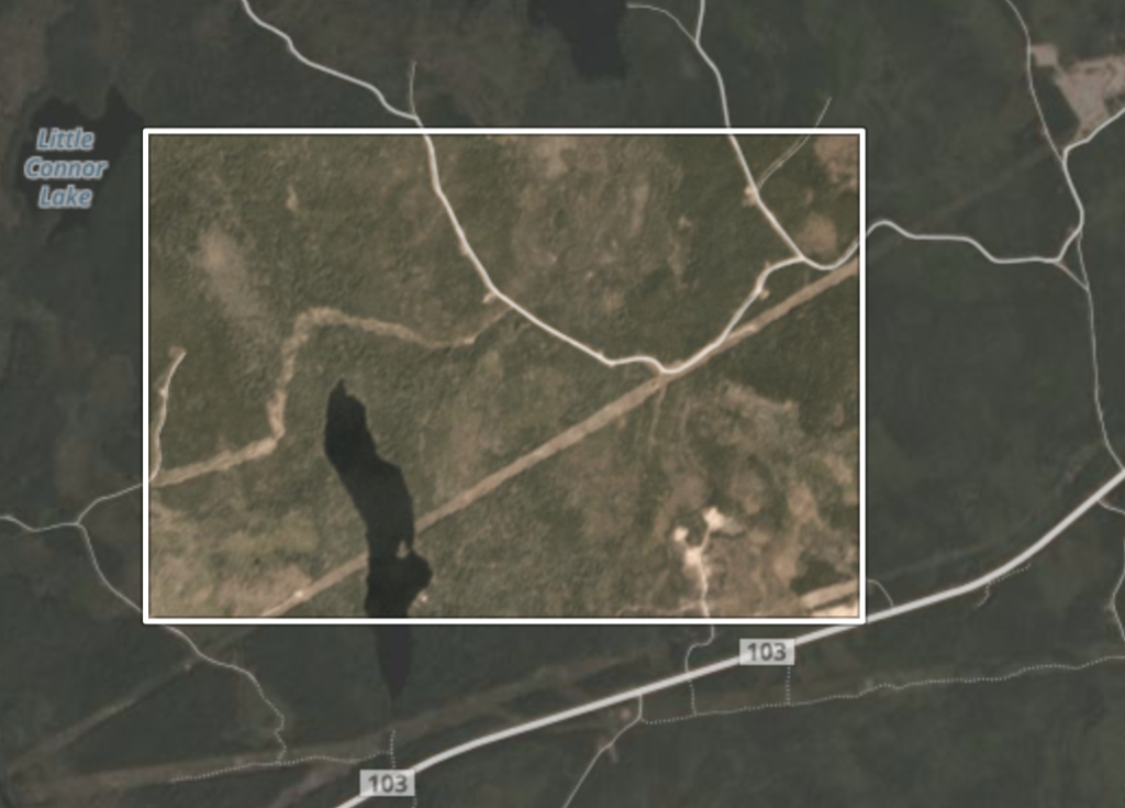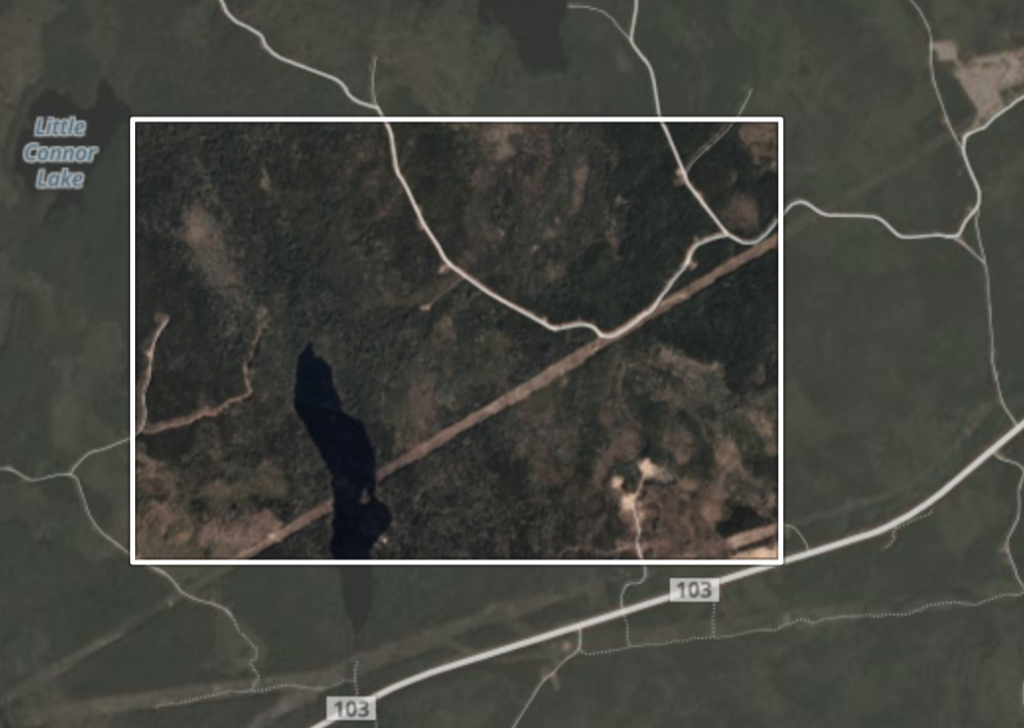 卫星照片展示毗邻滨湖湖毗邻的新公路的土地清理2019年4月下旬。该道路由新斯科舍省交通运输部门设计,续签和Westfor签订了伐木。据DLF称,这条路于2019年4月26日至5月1日至5月1日之间被清除。