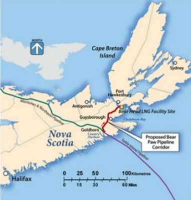 2016年12月,新斯科舍环境(了无)批准熊掌管道Corp .)的一家子公司液化天然气(LNG),建立一个2亿美元的液化天然气管道从熊头Goldboro未来40亿美元的液化天然气出口终端的位置点是在这次的海峡。根据向公用事业和审查委员会提交的文件,该项目预计将覆盖大约1087公顷的土地,其中大约50%是省级皇冠土地,其中一些已确定为保护区或拟议保护区。总而言之,这条管道走廊大约有62公里长,将于2018年开始建设。