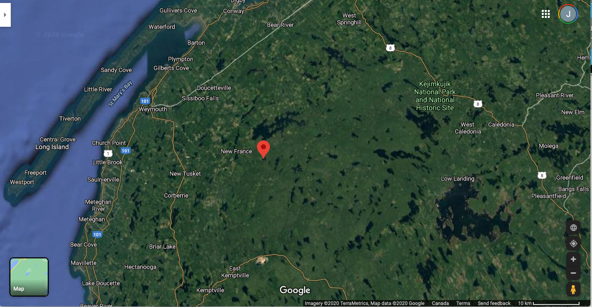 谷歌地图显示的岩石点湖新法国地区迪格比县