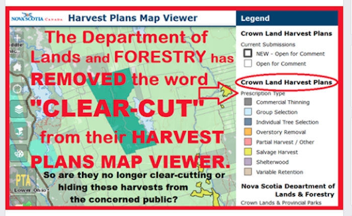 那些在皇家土地上签字接受拟议收获计划的新苏格兰人最近可能已经注意到一些令人不安的变化。就在几天前,地图上不再明确表示提议的削减是否“明确”。从图例和收获处方类型列表中删除了该单词。这一变化立即引起了西南新星生态林业的注意,并在其FB页面上发布了如下消息: