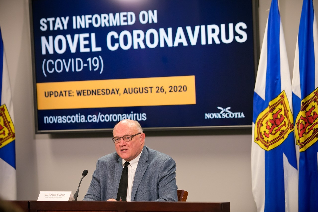2020年8月26日,罗伯特·斯特朗博士在2019冠状病毒病通报会上。图片:通信新斯科舍省