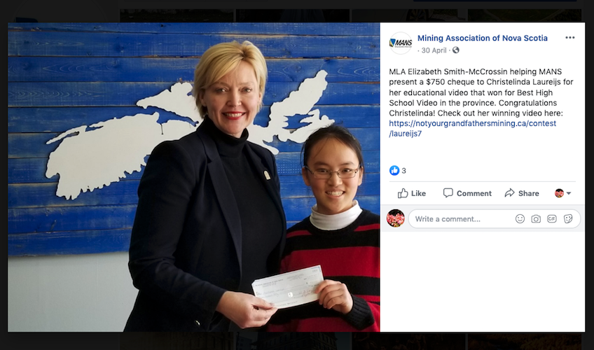 两个都自由和PC MLAS曾与人类一起在省周围的学校发出奖品。正如我写道的那样这里,2018年4月,自由贸易议员和商业杰夫麦克兰部长,帮助在冰川湾学校分发贷方奖品。来自Cumberland North的PC MLA,Elizabeth Smith-McCrossin也发现了举办竞赛的获奖者的时间,如Mark Furey,Lonenburg West Liberal MLA和Nova Scotia司法部长。