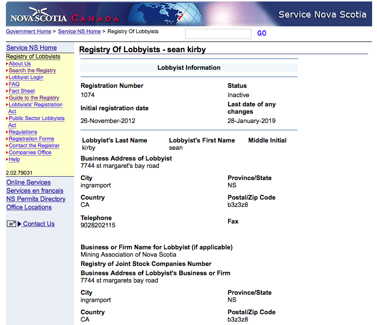 作为曼的雇员,肖恩·克拉比是一个注册游说者在新斯科舍和人类本身说它“代表了各种采矿和采石场的公司:探索,发现,开发,生产和填写以及该行业的顾问和供应商。”
