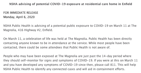 Just before Strang began speaking, the Nova Scotia Health Authority issued this alert:
