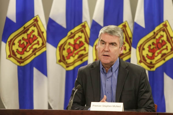 2020年3月31日(星期二),史蒂芬·麦克尼尔总理作为COVID-19每日通报。图片:通信新斯科舍省。