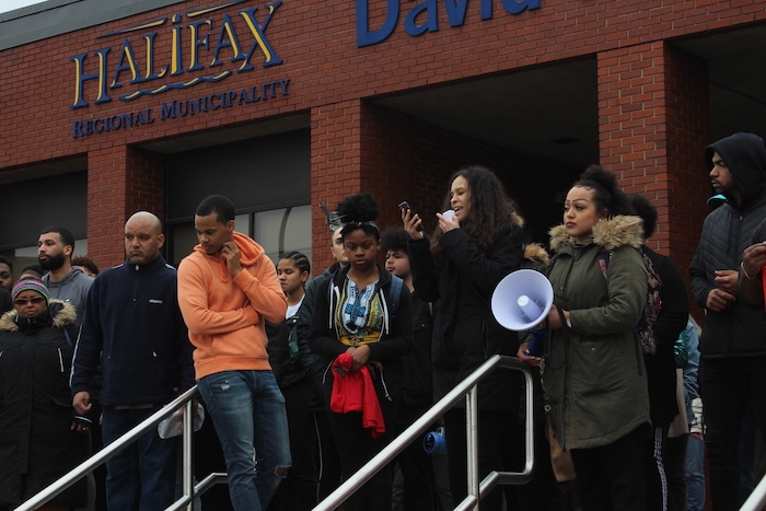 周六,哈利法克斯黑人社区的年轻人在北图书馆发起了一场对话,讨论斯科特·沃特利关于街道检查和街道检查对他们的影响的报告。谈话结束后,从图书馆到警察局(然后到省府)有一场游行,要求结束街头检查。在警察局,埃尔·琼斯朗读了她的诗《停止街头检查》。