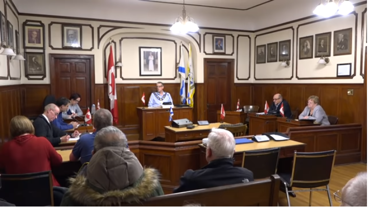 这是2019年1月14日斯特拉顿镇议会会议上讨论支持延长Boat Harbour使用期限的北方纸浆信的视频截图。