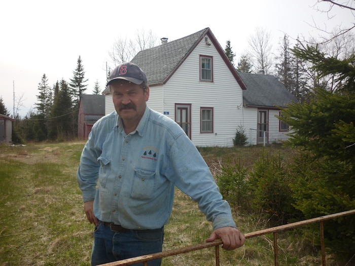 森林希金斯(初级)在穆斯河的旧希金斯家庭家庭前面,被征用和拆除了大西洋黄金的touquoy矿。照片提供希金斯家族