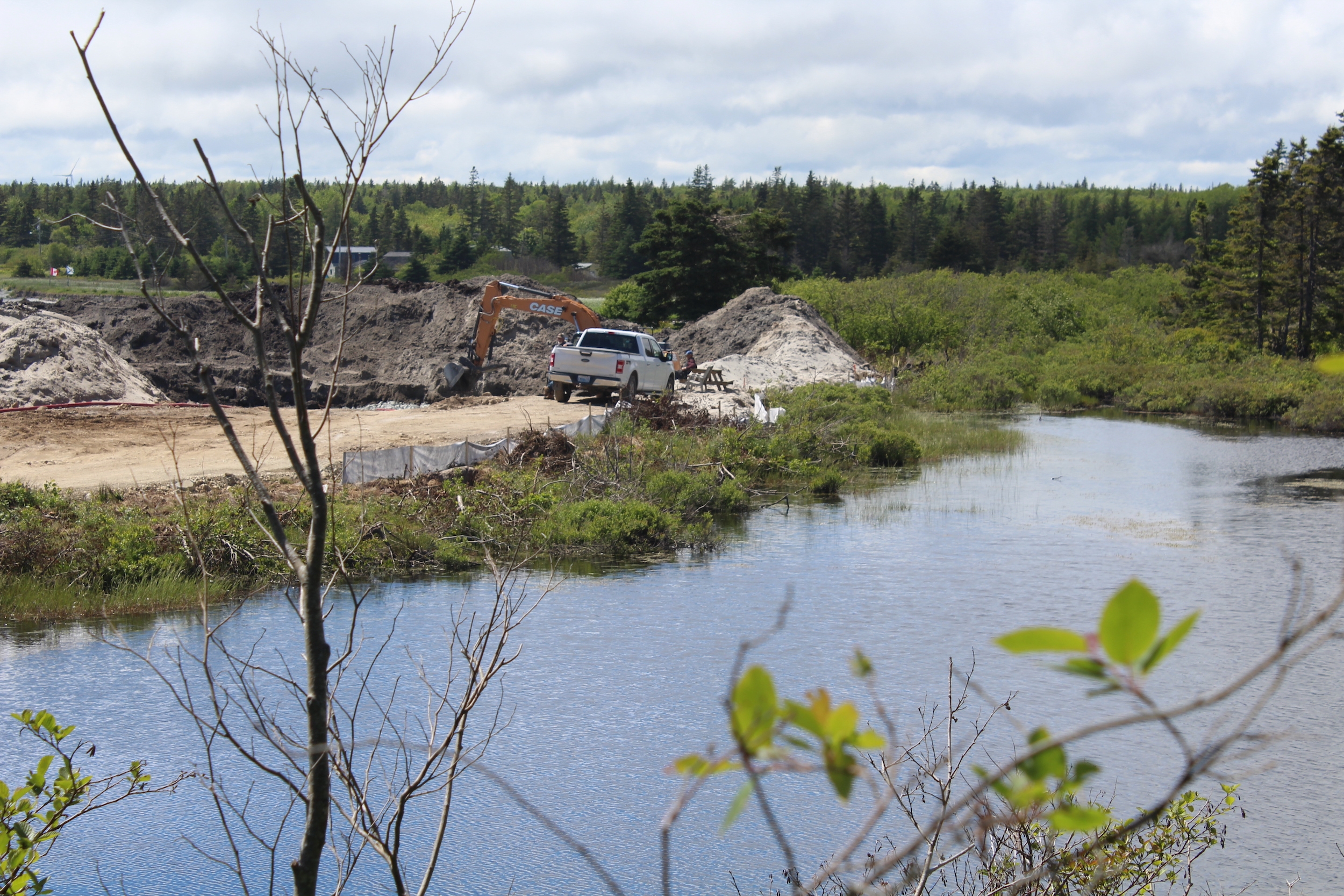 In order to construct a road that could handle construction vehicles, part of the pond was filled in. Photo: Tim Bousquet / Halifax Examiner