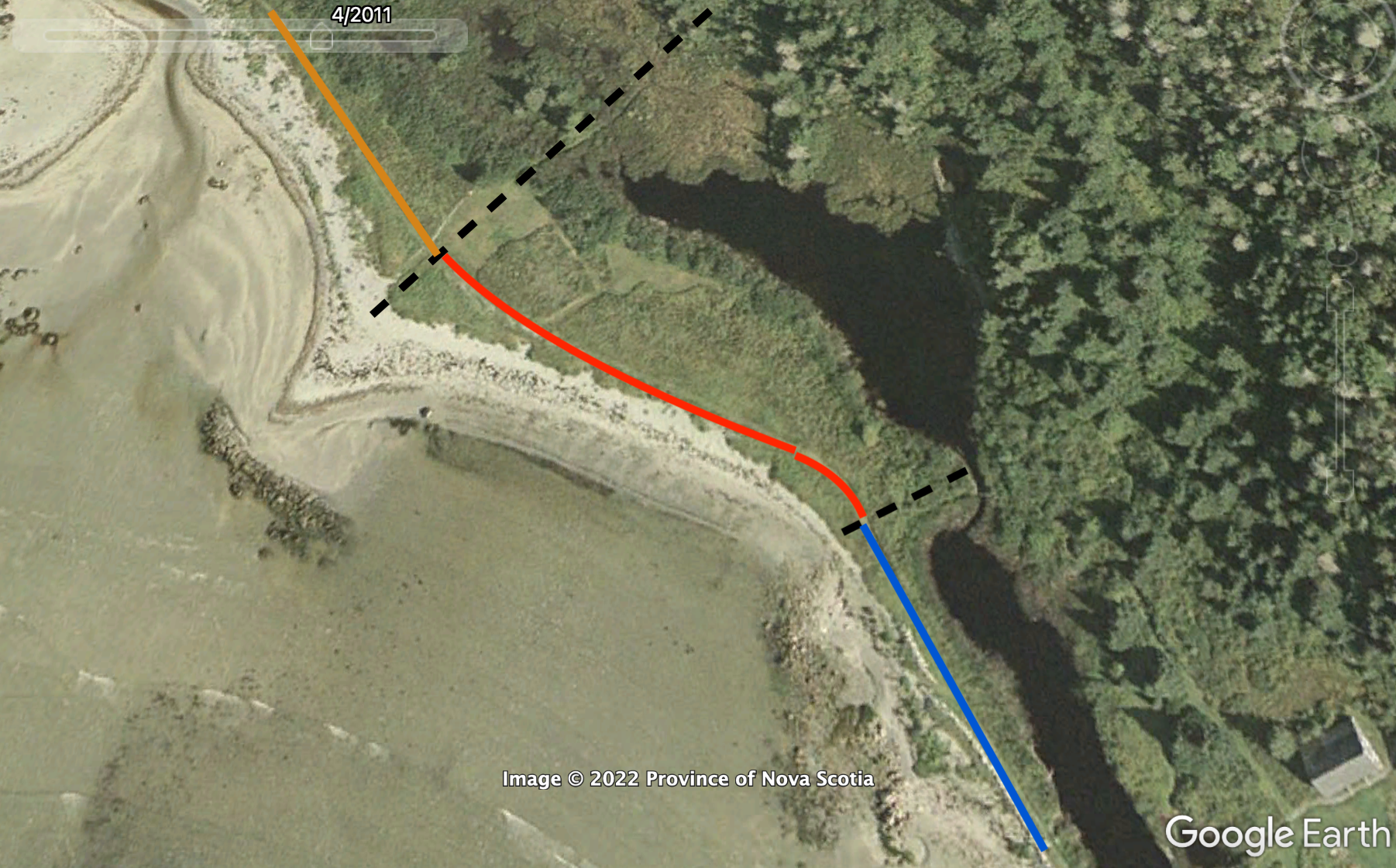 The 2011 aerial photo, farther to the west. Photo: Province of Nova Scotia / Google Earth. Annotation: Tim Bousquet