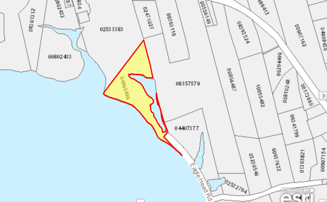 Area resident Peter Leslie told me that in the 19th century there was an ox cart road through what is now Kelly’s property, but the road was washed out in a storm around 1905. Eagle Head Beach Road was later reconstructed, and it is now protected from storm surges by riprap.