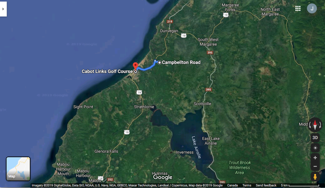 Cabot Links高尔夫球场和拟建机场的地点。谷歌地球