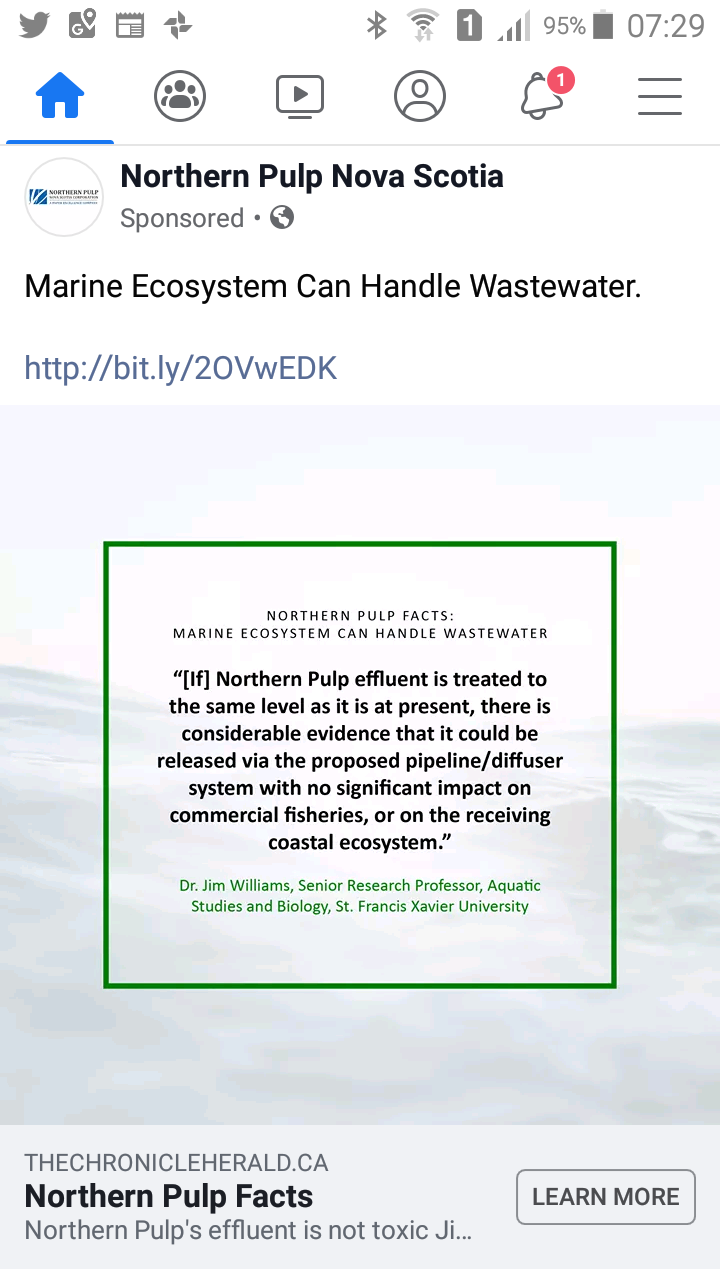 来自Northern Pulp的Facebook页面。