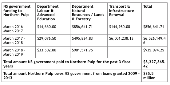 当然,这一数额并不代表新斯科舍政府在2017财年(或2018年或2019年)给Northern Pulp公司的金额。我总结了公共账户的数据,以及在2009年到2013年期间,北浆银行仍然欠该省人民的贷款,如下: