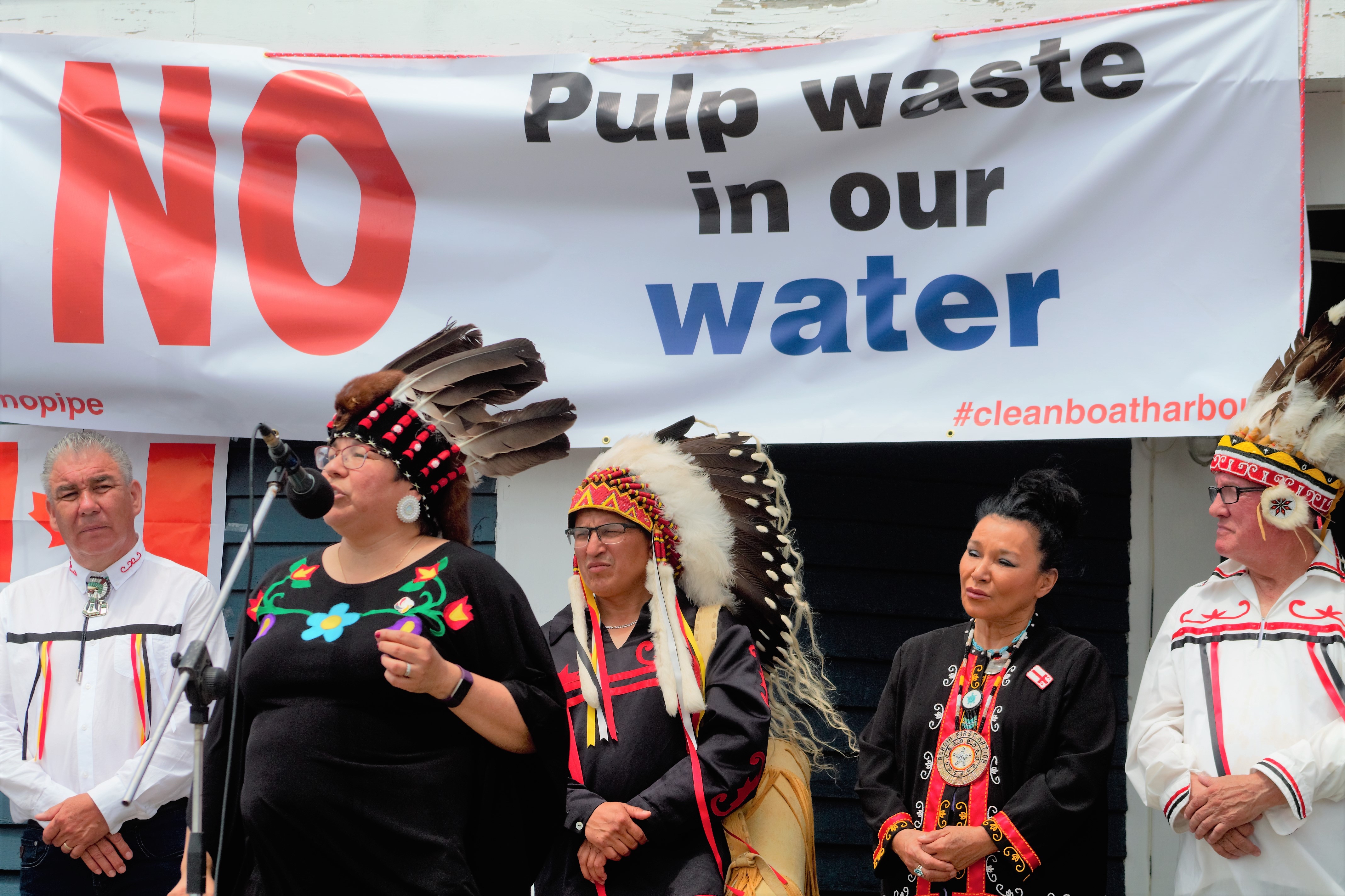 “#nopipe”标签已经成为渔民家庭和其他关注北方纸浆厂污染的公民团体的战斗口号。”琼·巴克斯特为《哈利法克斯考官报》报道.