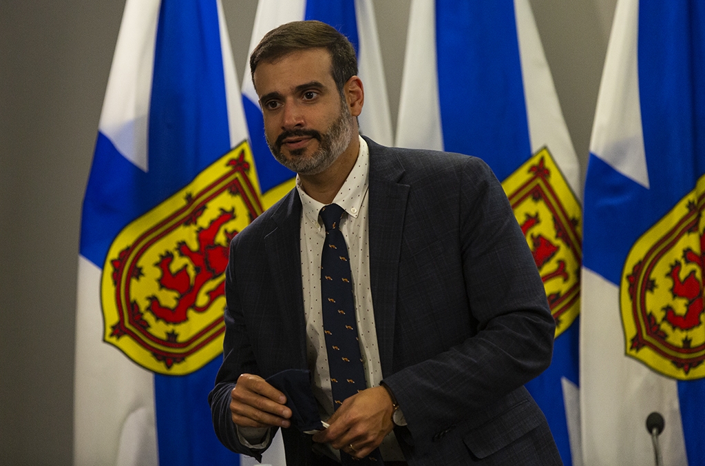 2020年10月1日(周四),新斯科舍教育部长扎克·丘吉尔(Zach Churchill)在内阁结束后接受媒体采访。-图片:赞恩·伍德福德