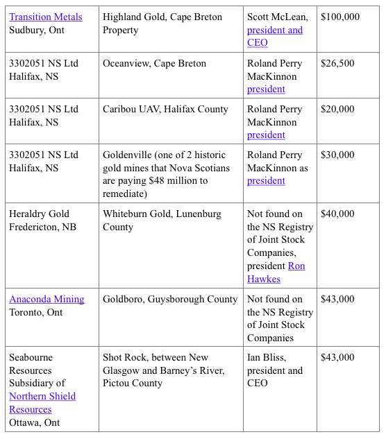 在它的网站上,男人吹嘘潜在的参与者认为“新斯科舍在淘金中的中间。一枚金矿于2017年开业,四个是在允许的过程中,并有很多探索,“(你可以阅读)在这里那在这里,在这里.)