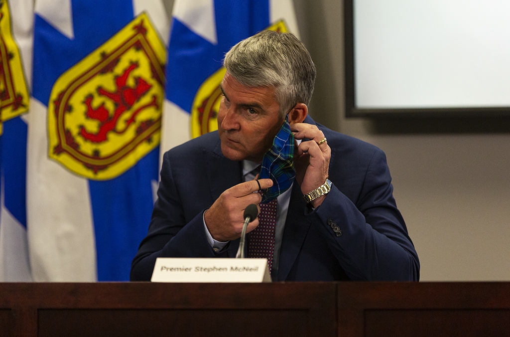 2020年10月1日(周四),加拿大新斯科舍省省长斯蒂芬·麦克尼尔(Stephen McNeil)在内阁卸任后的媒体发布会上摘下了口罩。-图片:赞恩·伍德福德