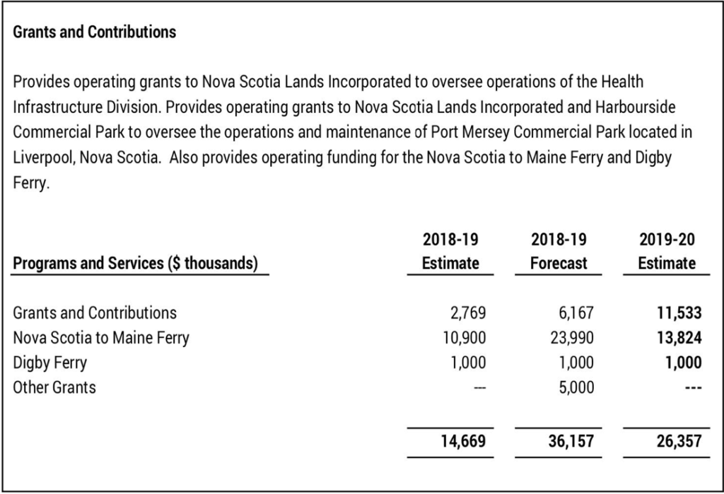 2018年,根据新斯科舍省的旅游业协会,约有1%的新斯科舍省的游客抵达Yarmouth Ferry。如果您将2300万美元(舍入)除以20,000名游客,则补贴均为每次旅行1,150美元。从波士顿的航班支付的价格更便宜 - 不是一个选择,因为该省与海湾渡轮有十年的协议。(也许省政府在谈判与私营公司的长期协议方面需要更好的法律专业知识。希望Breton的新P3医疗保健设施比渡轮和纸浆厂更好。