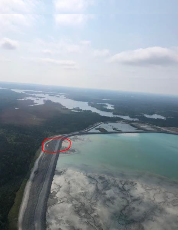 “你正在盯着尾矿坝墙泄漏,”在电子邮件中写道海狸。“目前还没有证据表明这一点尚未。您可以在图片中看到它们使用的小泵将有毒水泵回到尾矿蓄积。这令人不安!“
