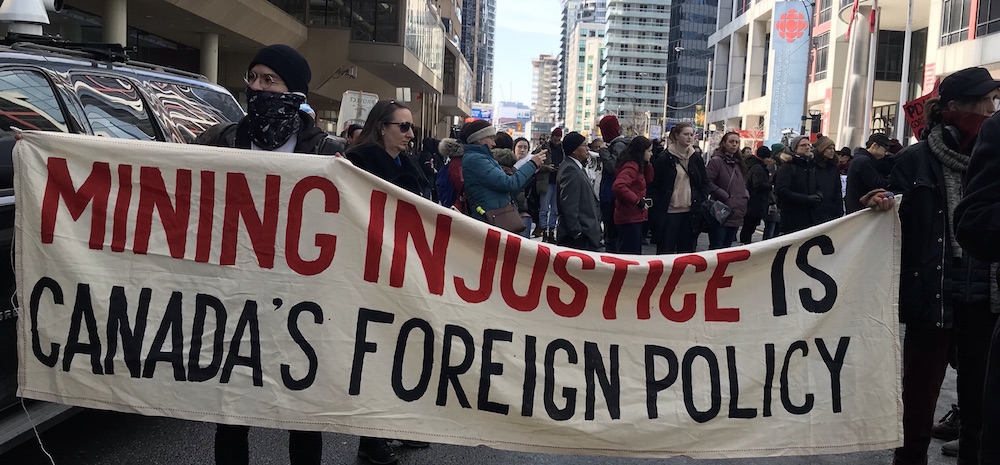 在加拿大举行的加拿大勘探者和开发商协会大会外举行的抗议活动。照片:琼巴克斯特