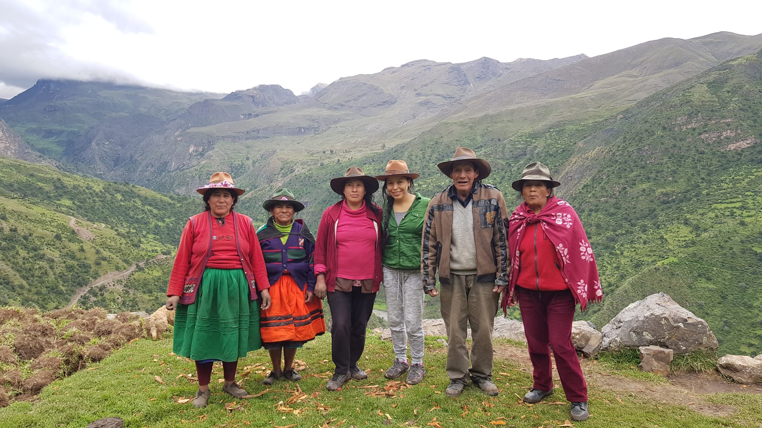 秘鲁Calcauso, Yojana Miraya Oscco(穿绿色衬衫),她的父亲在她的左边,她的阿姨们在她身边。照片了