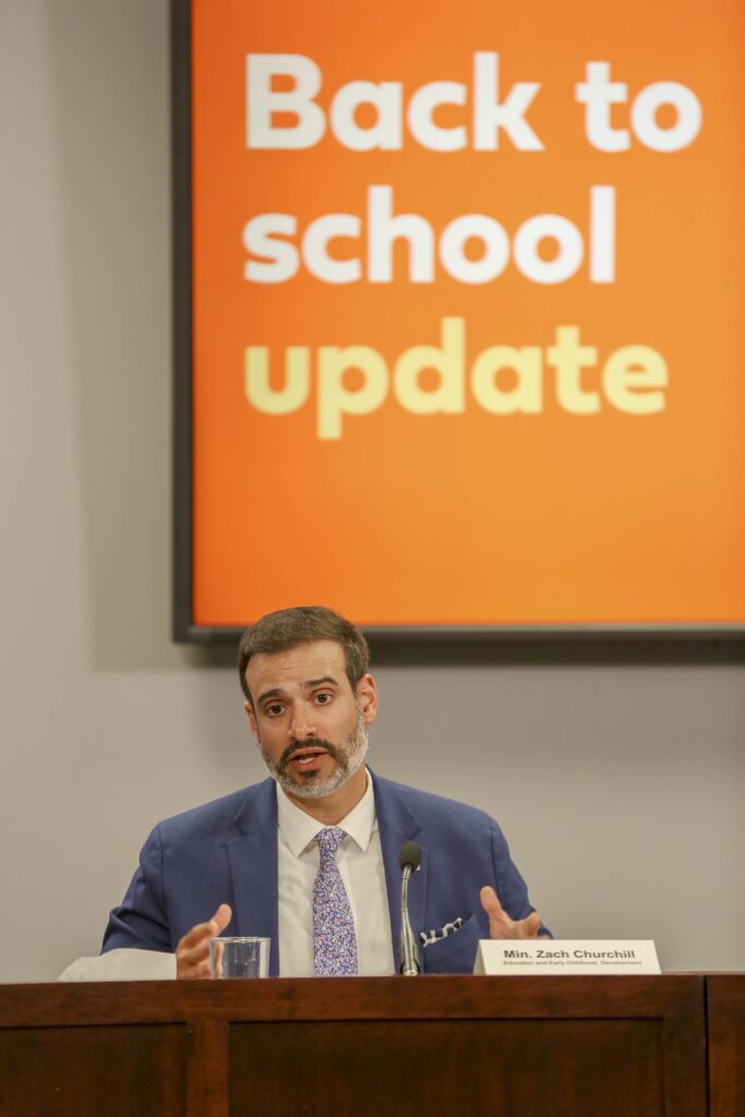 教育和早期儿童发展部长扎克·丘吉尔在周三的新闻发布会上。图片:通信新斯科舍省