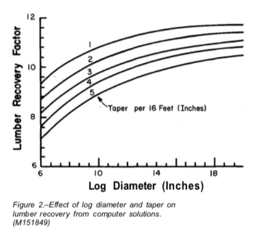 原木直径和锥度对木材回收率的影响,美国林业局,1984。