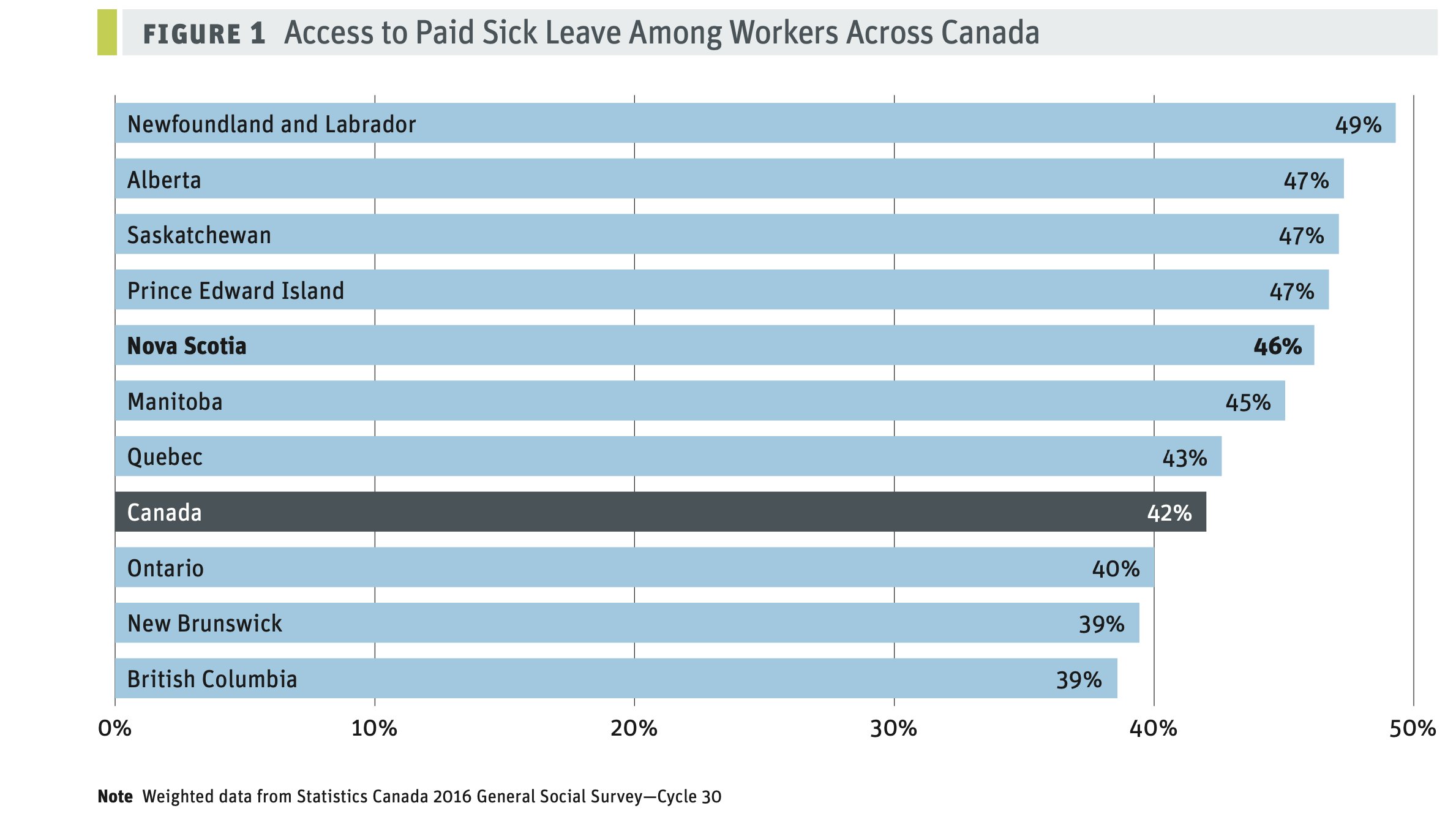 在获得带薪病假方面,新斯科舍省排名第五,略高于全国平均水平。
