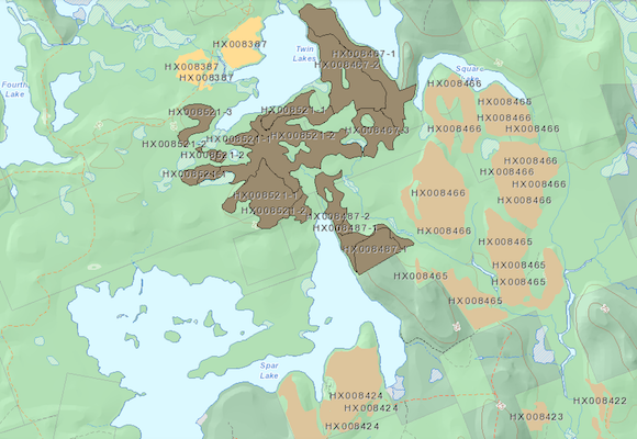 屏幕截图(上面和此)取自DNR的收获计划地图查看器。北方纸浆计划清除邻近双湖泊的深棕色所示的区域。该街区是公众评论的公开评论,直到2017年3月20日。与广场湖相邻的浅棕色区域也被去年北纸浆发布。根据DNR,2016年这些块是清楚的。