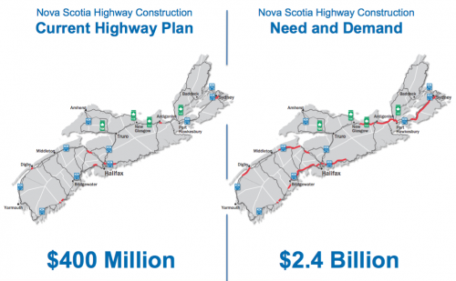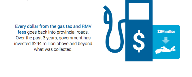 报告和演示的磋商,政府提出了公路基础设施在新斯科舍的惨淡的现实:我们已经花更多的比我们的天然气税收和车辆费用将覆盖在高速公路上,几乎每年1亿美元为每个过去的三年里。