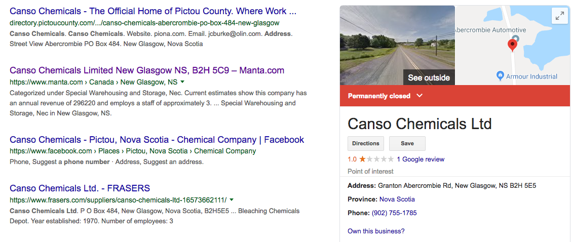 Google results for “Canso Chemicals.”