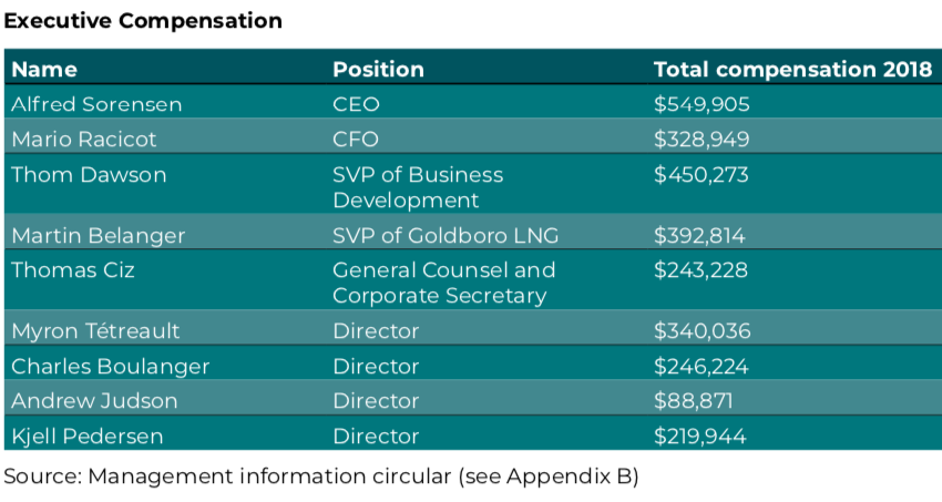在2018年8月29日的同一份报纸上,执行主编(同时也是出版人的配偶)海伦·墨菲再次给出了答案粉蝶科的故事中最重要的该公司首席执行官阿尔弗雷德·索伦森(Alfred Sorensen)表示,公司“即将”就100亿美元的Goldboro液化天然气项目做出最终投资决定。