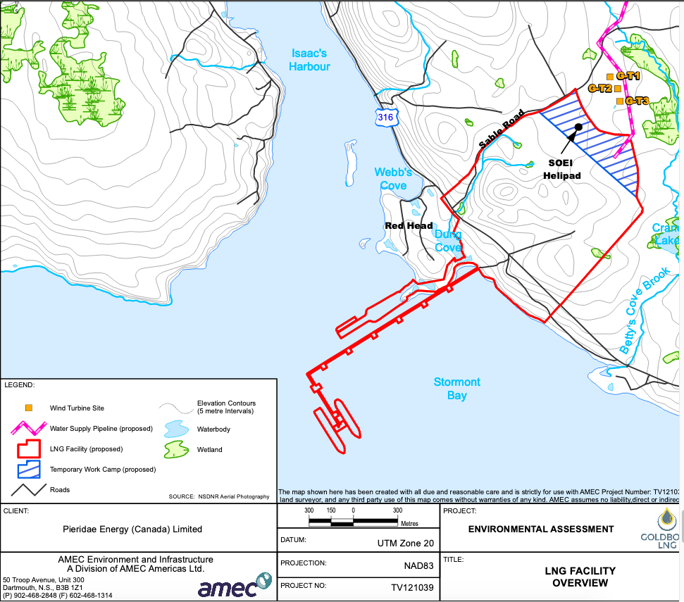 最近的news that Calgary-based Pieridae Energy’s has found a new engineering firm for its proposed liquefied natural gas (LNG) project in Goldboro, and worked out an agreement with a Calgary firm and the Assembly of Nova Scotia Mi’kmaw Chiefs to build and operate a huge work camp at the site, has prompted headlines that suggest the project is moving full-steam ahead.