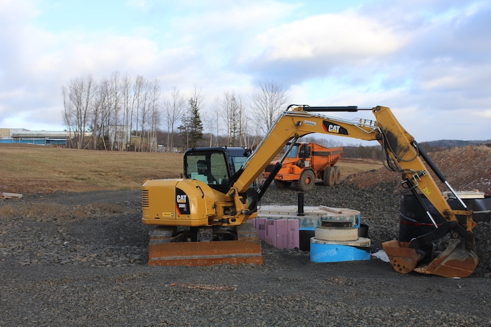 从河北沿河北京北观看(AAN 02100797)。请注意,福伊路延伸的建设结束,路面转变为通往新学校的CUL-DE-SAC;然而,从那时起向南,Faye Road Extension *延伸*继续作为泵站的粗暴路线,其中泵站正在建造(Bobcat)和剩下的米饭收缩覆盖所拥有的17.24英亩的包裹。但是,当污垢道路穿过轨道到小路和普遍拥有的包裹时,它突然新建被砂砾道。照片:哈利法克斯审查员