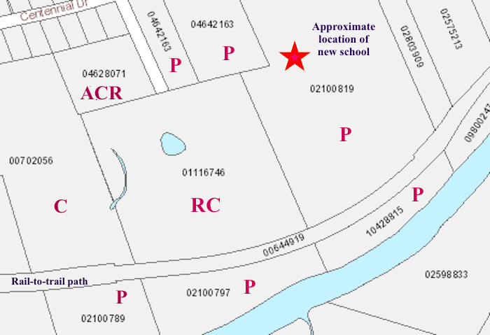 新学校将是一所小学到12年级的学校,位于现有学校的东南方向,沿着安纳波利斯河的缓坡而建。靠近河流的地方是一条古老的铁路通道,它已经被改造成一条活跃的“铁路到小道”的道路。新学校一开学,现有的学校就要拆掉。