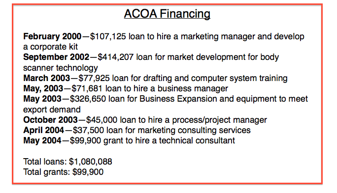 随着这种认可来到政府的纳税人金钱。Shaw创造了许多互联的公司 - 包括独特的解决方案设计,独特的系统设计,几乎是您的独特模式设计,以及软衫设计 - 这是吸引联邦经济发展局Acoa的注意力。在2000年至2004年期间,ACOA延长了一百万美元的贷款,以帮助公司扩大并赋予公司委托99,900美元,聘请技术顾问。