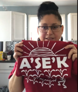 在A.推特message, Francis-Denny told the Halifax Examiner that the dark red colour of the new A’se’K shirt is “more traditional,” and that is was chosen because it “signifies our strength and resilience and the new designs were chosen to reconnect us to the land and water.”